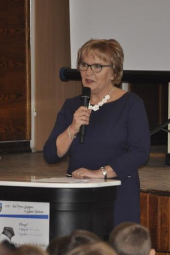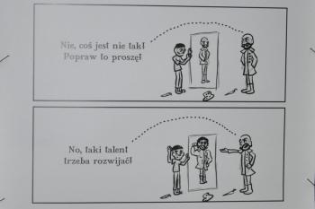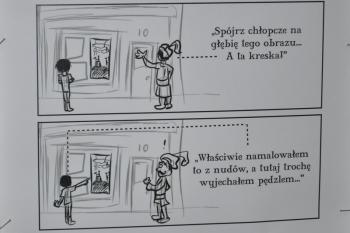 Następnie Pani Karolina Kolasa-Rusek przedstawiła prezentację multimedialną, w której omówiła szereg działań w roku 2017. Powstał komiks o życiu i twórczości Grottgera w wykonaniu Jakuba Jarnota i Małgorzaty Kuderskiej, stworzono kalendarz z uczniowskimi przekładami obrazów, odbyły się warsztaty malarskie oraz liczne wycieczki i lekcje biblioteczne.