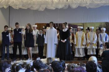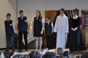 Występ artystyczny uczniów zrobił ogromne wrażenie na wszystkich widzach. Podróż w czasie – spektakl, którego scenariusz stworzyła pani Karolina Kolasa-Rusek wraz z panią Barbara Gabryś – przeniósł widzów do XIX wieku. Trójka uczniów, wędrując na strych w „starej” szkole, znalazła lustro będące portalem do przeszłości. Dzieci przeniosły się do nieistniejącej już oficyny, w której Grottger tworzył swoje największe dzieła.