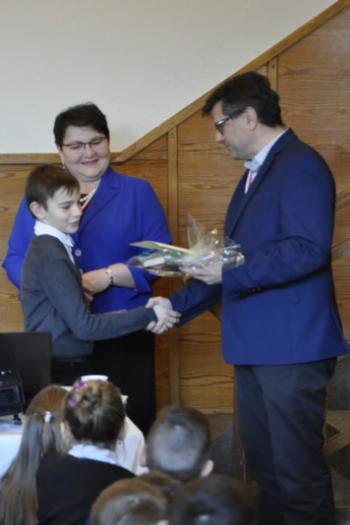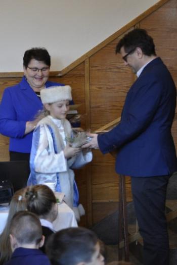 Kolejnym punktem programu było wręczenie nagród w Gminnym Konkursie Literacko-Plastycznym „Piórem i pędzlem malowane”. W tym miejscu serdecznie dziękujemy naszym sponsorom – Firmie „Konkret” z Poręby Wielkiej, sołectwu Poręba Wielka i Bankowi Spółdzielczemu w Zatorze. W części literackiej pierwsze miejsca zajęli: Monika Ziajka z SP Brzezinka oraz Jan Wawro z ZSP Harmęże. Drugie miejsca zajęły: Amelia Pawełczyk, Aleksandra Janas z SP Poręba Wielka oraz Aleksandra Graca z SP Brzezinka. Trzecie miejsca przypadły w udziale Edycie Lasek z SP Brzezinka i Kacprowi Wojtaszczykowi z SP Poręba Wielka. Pozostałe prace nadesłane przez Małgorzatę Inglot z SP Brzezinka, Amelię Jakubowską z ZSP Harmęże, Oliwię Jaromin, Kingę Konik, Darię Bałos z SP Poręba Wielka, Szymona Kozłowskiego, Monikę Kwaśny i Miriam Szafraniec z SP Brzezinka otrzymały wyróżnienia pierwszego i drugiego stopnia.