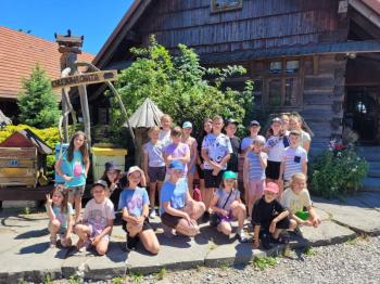Nieodłącznym punktem programu była wycieczka do Chlebowej Chaty, gdzie dzieci mogły poznać życie i pracę naszych przodków. Młócenie cepami, mielenie ziarna, wypiek podpłomyków, poznawanie świata pszczół i degustacja regionalnych przysmaków – to wszystko stworzyło niezapomniane wspomnienia i dało dzieciom cenną lekcję o szacunku do żywności i pracy ludzkich rąk.