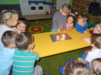 Zajęcia z ogniem były okazją do rozmowy na temat zagrożeń związanych z ze zjawiskiem ognia oraz sposobów postępowania w chwili zagrożenia.