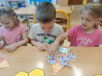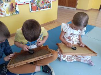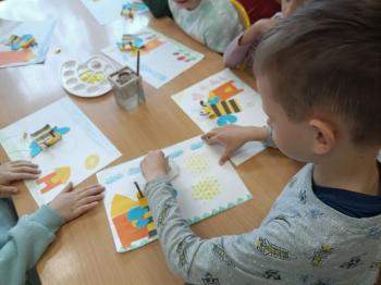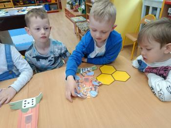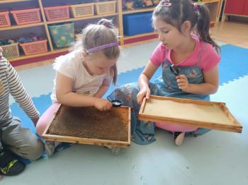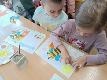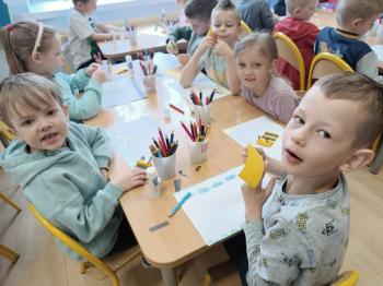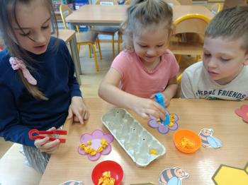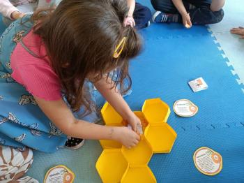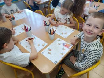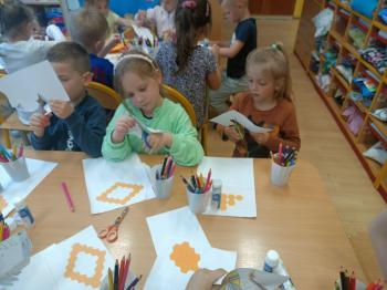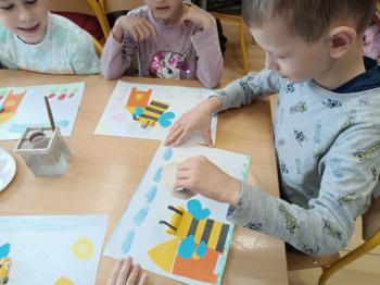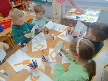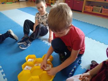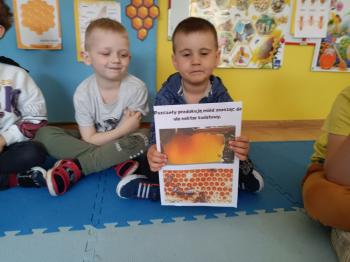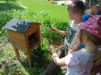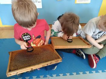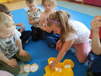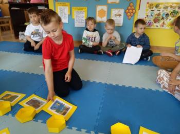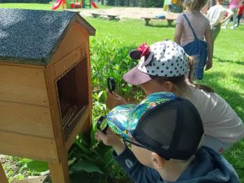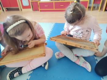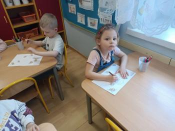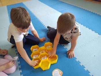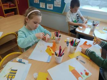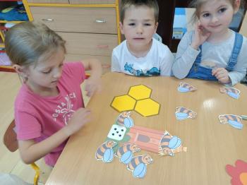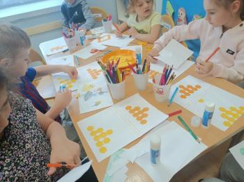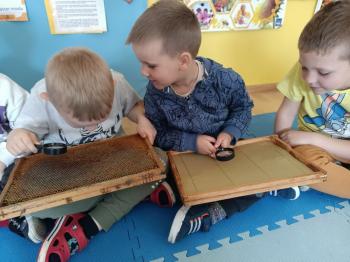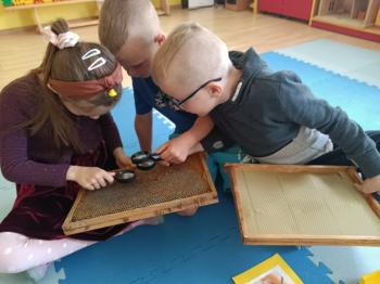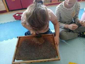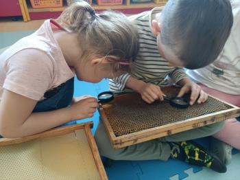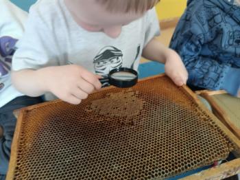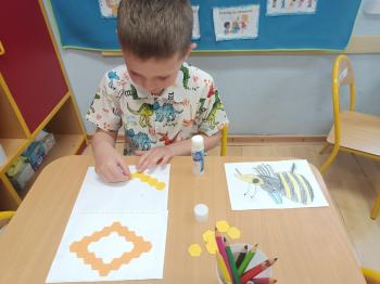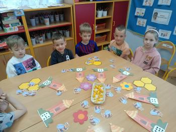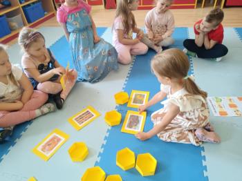 W grupie Jeżyki realizowano projekt edukacyjny "Pszczoła". W trakcie zajęć,l dzieci tworzyły siatkę pojęć na temat tego co wiedzą o pszczołach, ustalały, co chcą się o nich jeszcze dowiedzieć, poznawały nazwy członków "Pszczelej rodziny" (królowa, robotnice, trutnie), brały udział w grach dydaktycznych, wykonywały prace plastyczne tematycznie związane z projektem. Jeżyki miały okazję poznać rożne rodzaje miodu oraz etapy jego powstawania oraz delektowały się różnymi rodzajami miodu. Projekt edukacyjny wzbogaciło spotkanie z ekspertem - pszczelarzem, który wzbogacił wiedzę ciekawostkami.