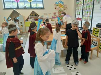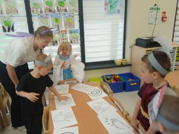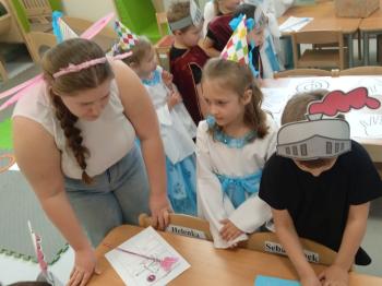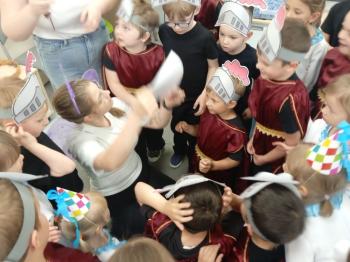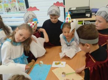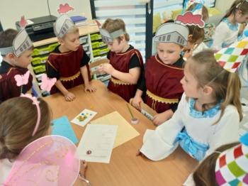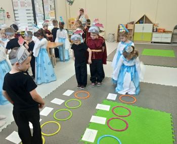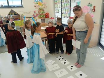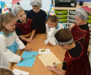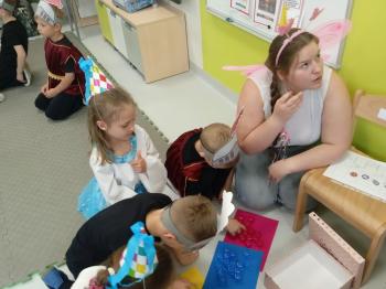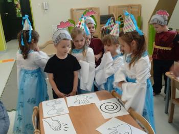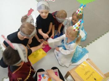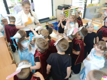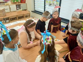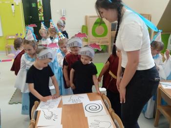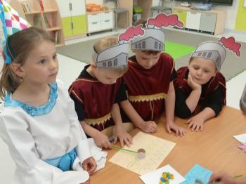 8 maja w grupie Jeżyki odbyły się zajęcia matematyczne przeprowadzone przez studentki III roku PPiW z Małopolskiej Uczelni Państwowej im rtm. W.Pileckiego. Jeżyki przebrane w stroje rycerzy i wróżek jako odważni poszukiwacze przygód mieli za zadanie pomóc Strażnikowi Smoków w odnalezieniu Smoczej Korony.Na drodze poszukiwaczy pojawiły się zagadki, tajemnicze ślady , zabawy sprawnościowe, których rozwiązanie przybliżało ich do odnalezienia korony.