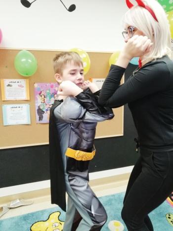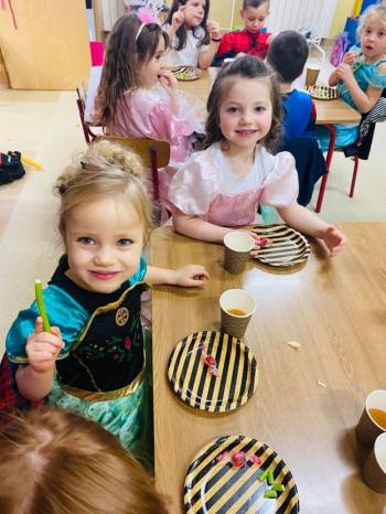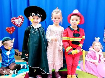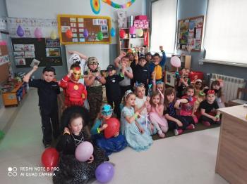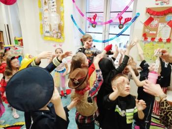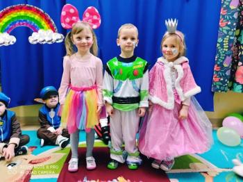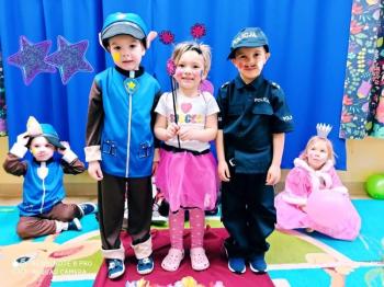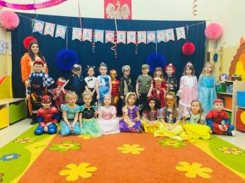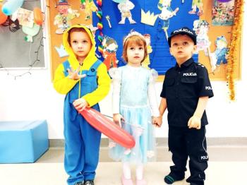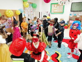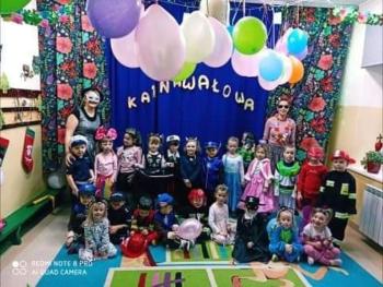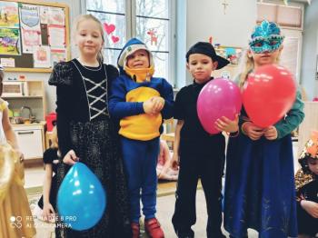 Karnawał to miła tradycja, przepełniona muzyką i zabawą, gdzie ważnym elementem tego okresu są bale. Bal karnawałowy dla przedszkolaków to niezwykły, długo wyczekiwany dzień. Jest atrakcją bardzo lubianą przez dzieci, dostarczającą im wielu przeżyć i radości.Tak też było w naszym przedszkolu w minionym tygodniu, kiedy we wszystkich salach, w różnych dniach odbył się bal karnawałowy. Nauczycielki przedszkola dołożyły wszelkich starań, by wystrój sal balowych wprowadziły dzieci w radosny, bajkowy nastrój oraz zachęcał do wesołej zabawy. Tego dnia już od rana w przedszkolu pojawiały się kolorowe postacie. Dzieci przebrane były za bohaterów znanych bajek, w salach przedszkolnych można było spotkać wróżki, księżniczki, delikatne motylki, rycerzy, smoka, piratów, policjantów, Spider-Mana, Batmana... Nie sposób zliczyć i wymienić tych wszystkich postaci. Rozpoznać dzieci było bardzo trudno. Dzieci świetnie się bawiły uczestnicząc wspólnie ze swoimi paniami w tańcach oraz licznych konkursach zręcznościowych, ruchowych, plastycznych oraz tanecznych. Podczas odpoczynku przedszkolaki słuchały zagadek o różnych postaciach bajkowych. Przedszkolaki świetnie się bawiły przy rytmicznej i skocznej muzyce. Na każdej z sal, podczas pląsów, było bardzo wesoło oraz kolorowo. Uśmiech nie znikał z dziecięcych twarzy, mimo chwilowego zmęczenia. Bal umożliwił dzieciom spędzenie czasu w miłej atmosferze. Wspólna zabawa przyniosła wiele radości naszym przedszkolakom.