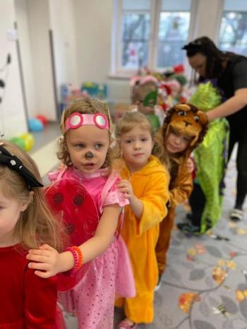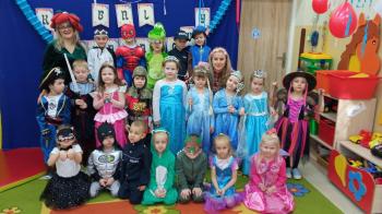 W dniu, w którym została zaplanowana zabawa karnawałowa w poszczególnych oddziałach od rana pojawiały się kolorowe postacie. Dzieci przebrane były za bohaterów znanych bajek. W salach przedszkolnych można było spotkać wróżki, królewny, księżniczki, motylki, rycerzy, piratów, bohaterów bajki Psi Patrol, policjantów, Spider-Mana, Batmana, diozaury, czarownice... nie sposób zliczyć i wymienić tych wszystkich postaci. Wystrój sali oraz dziecięce muzyczne hity wprowadzały wszystkich w radosny, skoczny nastrój oraz zachęcały do wesołej zabawy.