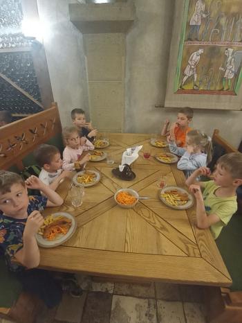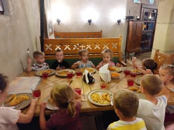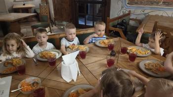 Energii i siły do wspólnej zabawy na placu zabaw dodał obiad zjedzony w komnatach zamkowych.