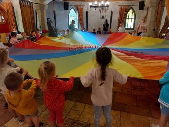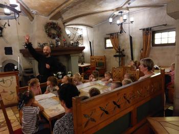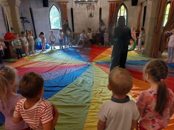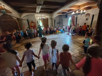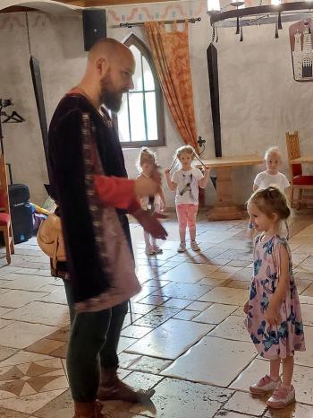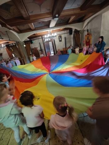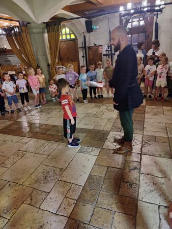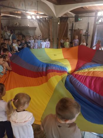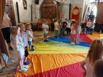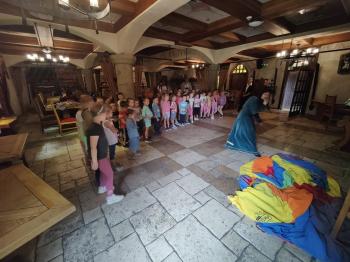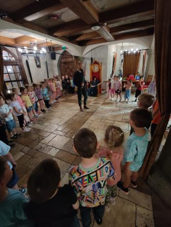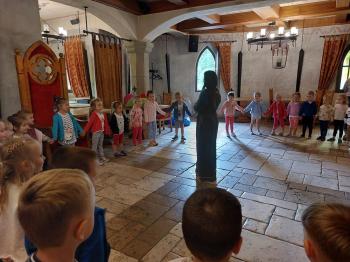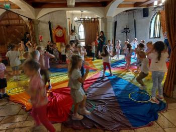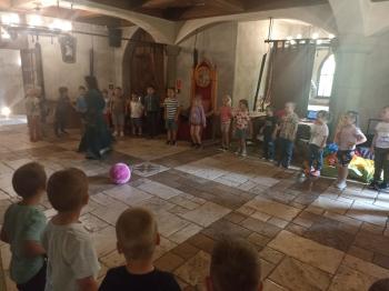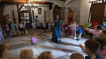 W zamkowych komnatach wszystkie dzieci brały udział w wesołych animacjach.