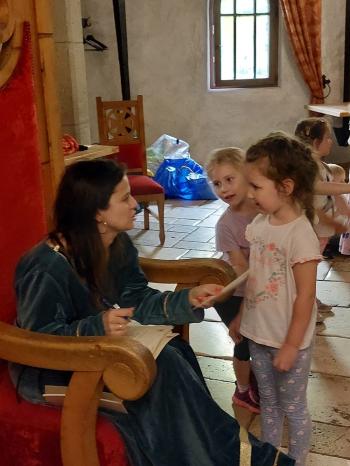 Na zakończenie wszystkie przedszkolaki zostały pasowane na księżniczkę i rycerza, a z rąk samej księżnej dworu otrzymały pamiątkowy dyplom.