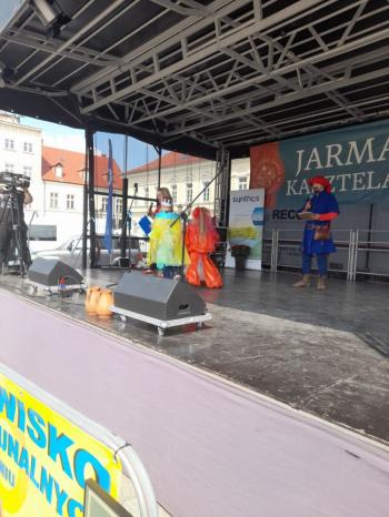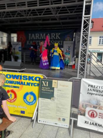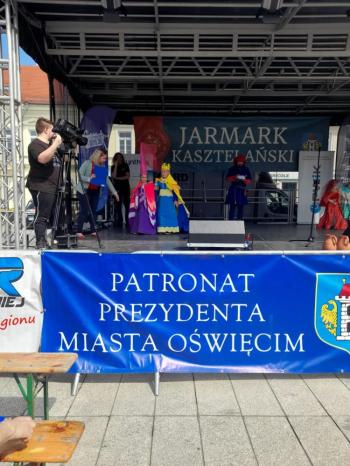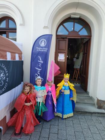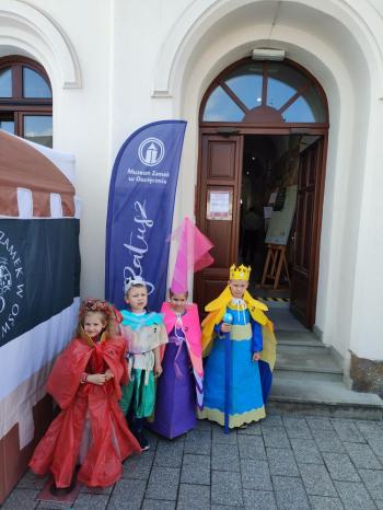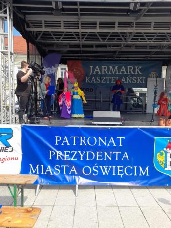 W tym roku Muzeum Zamek w Oświęcimiu ogłosiło konkurs plastyczny pt. ,,Książęce szaty”, który miał być rozstrzygnięty na XI Jarmarku Kasztelańskim 8 maja 2022r. W konkursie uczestniczyły przedszkolaki z naszego przedszkola byli to z grupy Kaczuszek Tymon Mrówka i Katarzyna Łazik oraz Antoni Łukawski i Lilianka Drabczyk z grupy Żabek. Właśnie 8 maja w niedzielę, w piękny słoneczny dzień na scenie zaprezentowały się dzieci z naszego przedszkola w pięknych strojach pary książęcej według własnej interpretacji twórczej. Przedszkolakom zostały wręczone wspaniałe nagrody. To był bardzo wyjątkowy dzień!! |