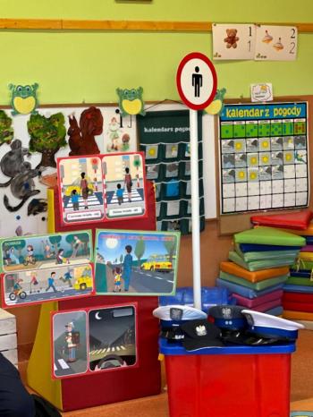 Pan Policjant przypomina: Jest czerwone – to stoimy, na żółtym zawsze czekamy, na zielonym przechodzimy. No właśnie, zielone mamy. Dziękujemy, już idziemy...