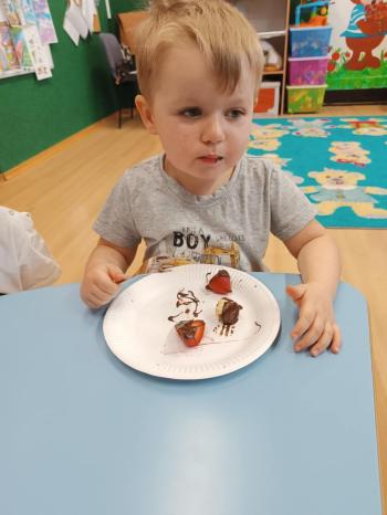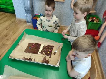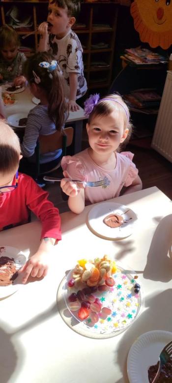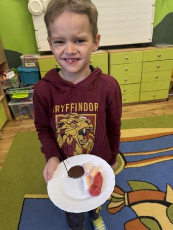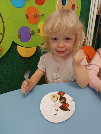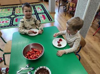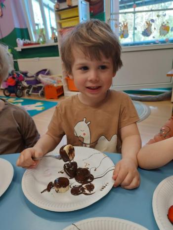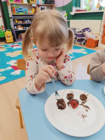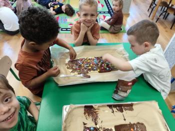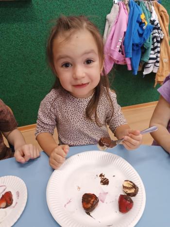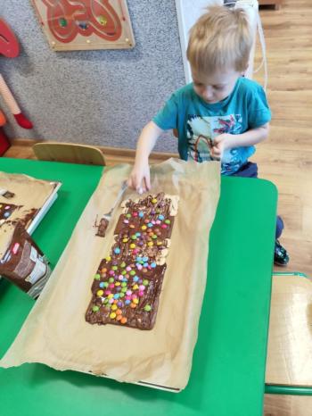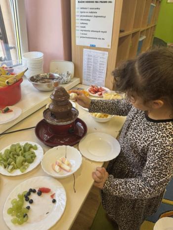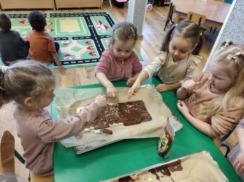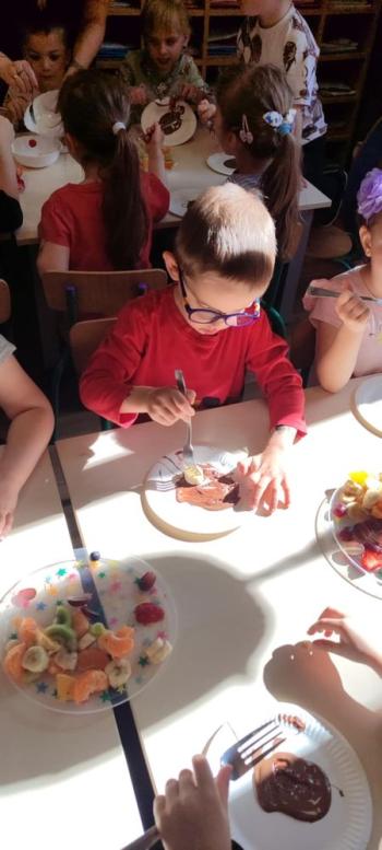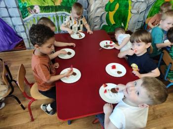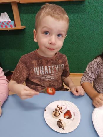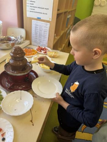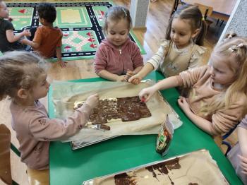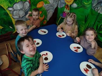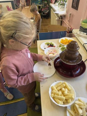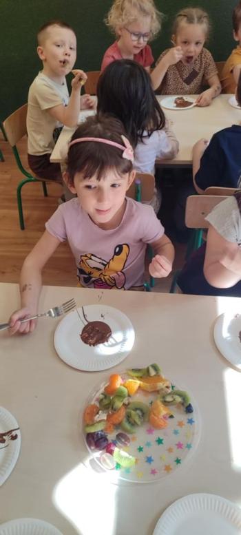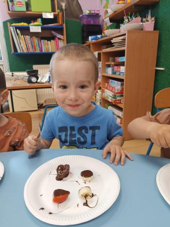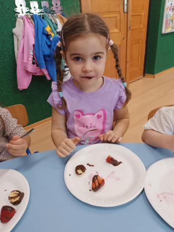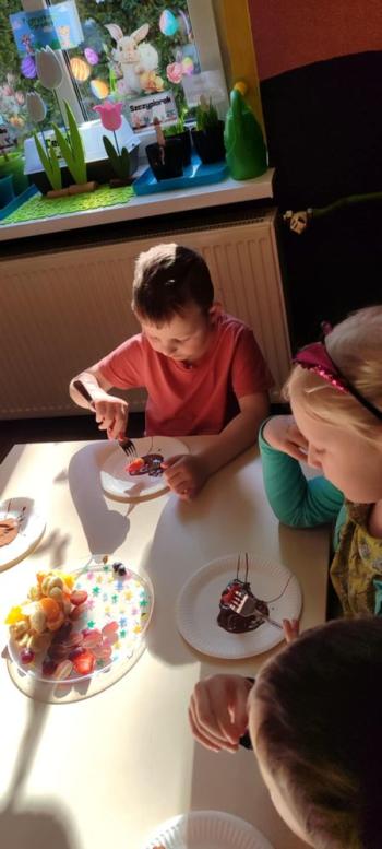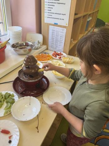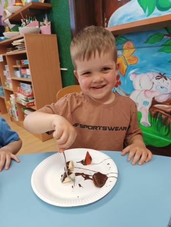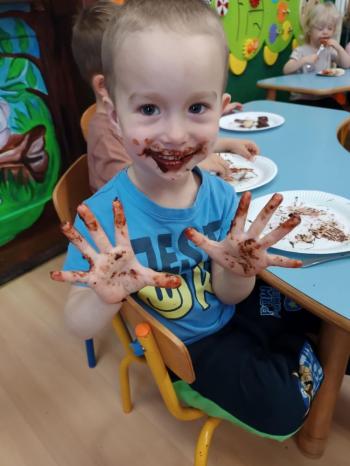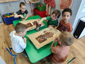 W naszym przedszkolu 14 kwietnia obchodziliśmy Dzień Czekolady – jedno z najsłodszych świąt w kalendarzu! Dzieci poznały historię czekolady, dowiedziały się, skąd pochodzi kakao oraz jak powstają czekoladowe smakołyki. Nie zabrakło również kreatywnych zabaw plastycznych, w których motywem przewodnim była oczywiście… czekolada! W każdej grupie zorganizowano tematyczne zajęcia: degustacje różnych rodzajów czekolady, eksperymenty z rozpuszczaniem tabliczki w ciepłym mleku, a nawet małe warsztaty kulinarne, podczas których dzieci przygotowywały własne słodkie przekąski. Dzień Czekolady był nie tylko pysznym, ale i edukacyjnym przeżyciem – połączyliśmy przyjemne z pożytecznym! Dziękujemy wszystkim dzieciom i nauczycielom za aktywny udział i radosną atmosferę!