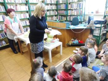 Wyjątkowym zainteresowaniem włosienickich przedszkolaków cieszyła się lekcja biblioteczna i spotkanie z panią Marią Stachurą – Przewodnicząca KGW we Włosienicy. Tematem przewodnim spotkania była uprawa i obróbka białej kapusty.