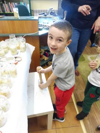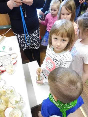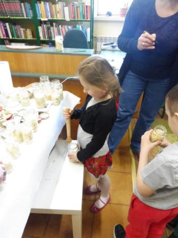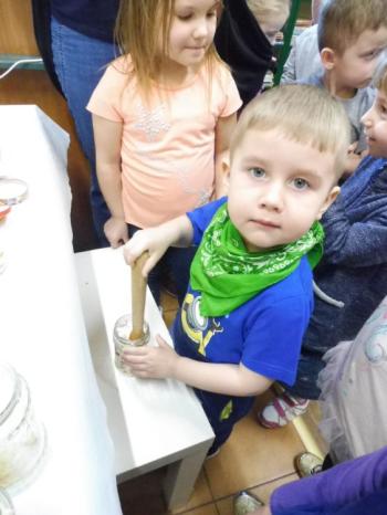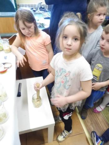 Zamiast beczki użyliśmy słoiczków, a w ubijaniu pomogły nam drewniane ubijaki.