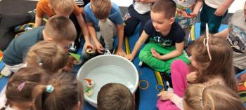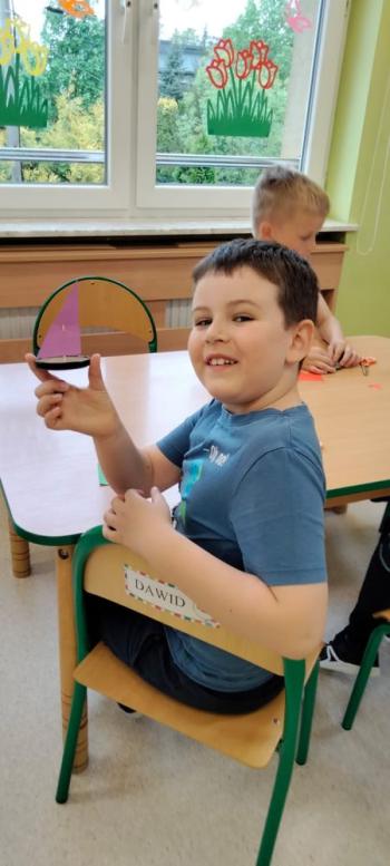 Podczas ostatnich już zajęć z bloku tematycznego ,,Gdzie jest powietrze?” dzieci z oddziału ,,Pszczółki” rozmawiały o wykorzystaniu siły wiatru w różnych dziedzinach działalności człowieka. Wykonały żaglówkę, którą położyły na wodzie i dmuchając w żagiel przemieszczały ją z jednego końca pojemnika na drugi. Wiedzą też,Podczas ostatnich już zajęć z bloku tematycznego ,,Gdzie jest powietrze?” dzieci z oddziału ,,Pszczółki” rozmawiały o wykorzystaniu siły wiatru że siłę wiatru można zaobserwować na podstawie wykonanego przez siebie wskaźnika – tasiemka przymocowana do kijka za pomocą pinezki. Podczas wykonywania wiatraczków przedszkolaki doskonaliły umiejętność cięcia nożyczkami, a wytwory swojej pracy wykorzystają do zabawy w ogrodzie przedszkolnym.