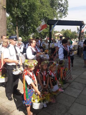 Msza święta dziękczynna, celebrowana przez ks. proboszcza Stanisława Sadlika odbyła się 15 sierpnia o godzinie 10:30 w parafii św. Bartłomieja w Porębie Wielkiej. Korowód dożynkowy wyruszył spod Domu Ludowego do kościoła i tam parafianie z Poręby dziękowali Bogu za zebrane plony. Ofiarowali, jak to jest zawsze w zwyczaju, chleb, wino, wieniec dożynkowy, owoce, warzywa oraz koszyczki kwiatów i ziół, jako że było to także Święto Matki Bożej Zielnej. Gospodarzami tegorocznych skromnych uroczystości byli reprezentanci sołectwa, organizacje: KGW,OSP z sołtysem, Marią Brombosz na czele. Władze Gminy reprezentowała Agata Michalska, Dyrektor CUW; obecni byłi także: Bernardyna Bryzek - w podwójnej roli, członkini zespołu „Porębianie” a zarazem przewodniczącej Rady Gminy oraz radny z Poręby Wielkiej Tomasz Mydlarz.