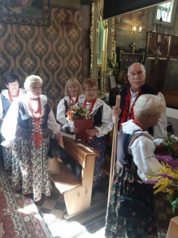 Tradycyjnie już zespół "Porębianie" uświetnił mszę świętą pięknymi pieśniami. Przy wejściu do kościoła członkowie rady sołeckiej przypinali wiernym symboliczne "kłóska".