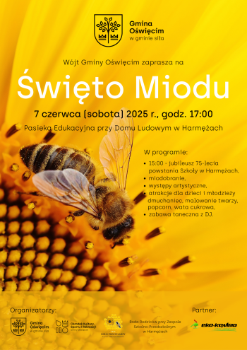 Zapraszamy Was na kolejną edycję Święta Miodu w Harmężach, które odbędzie się 7 czerwca 2025, godz. 17:00 w Pasiece Edukacyjnej przy Domu Ludowym w Harmężach.