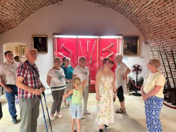 Jednym z najbardziej fascynujących punktów programu była bez wątpienia wizyta w zbrojowni. Znajdująca się tam imponująca kolekcja broni, zbroi i akcesoriów wojskowych zrobiła ogromne wrażenie na wszystkich uczestnikach. Mieliśmy okazję z bliska przyjrzeć się historycznym eksponatom, które kiedyś służyły w walce, a dziś stanowią cenne świadectwo dawnych czasów.