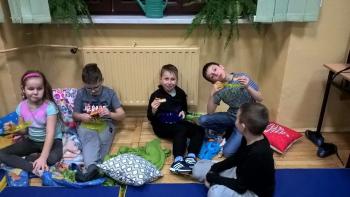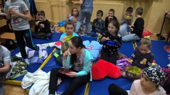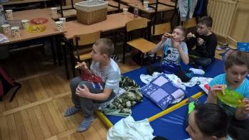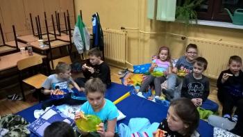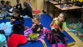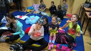 Bardzo miłym przerywnikiem w czasie oglądania był poczęstunek w postaci pysznej pizzy i napojów, który przygotowali rodzice. Z tego miejsca bardzo serdecznie dziękujemy wszystkim rodzicom, którzy zaangażowali się w pomoc przy organizacji całego wieczoru.