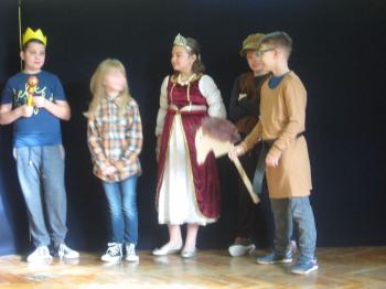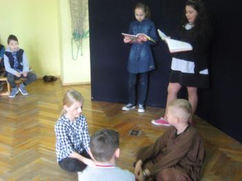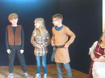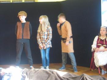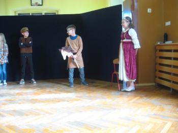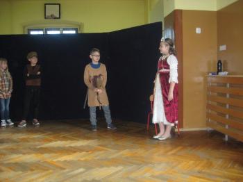 Uczniowie klasy IV zaprezentowali swe aktorskie umiejętności podczas lekcji języka polskiego. Na zakończenie omawiania cyklu baśni i legend zaprezentowali inscenizacje wybranych utworów. Wszyscy przygotowali się na miarę swoich możliwości, piękne przebrania i rekwizyty oraz gra aktorska sprawiły wszystkim wiele frajdy. Drugim projektem łączącym się z tym cyklem lekcji było stworzenie herbu oraz napisanie legendy o swojej rodzinie.
