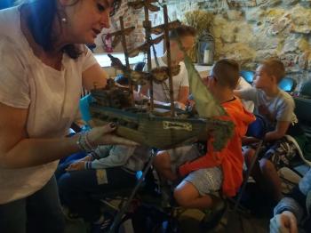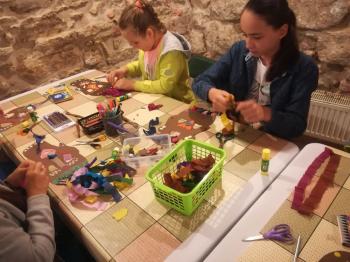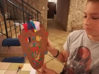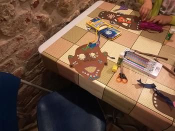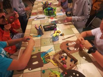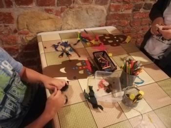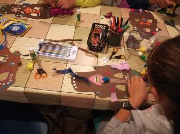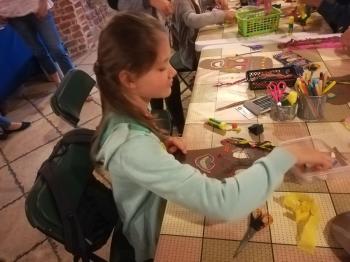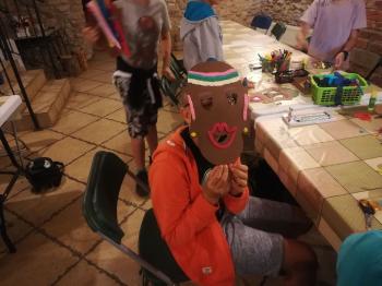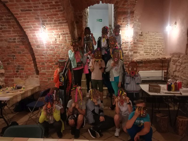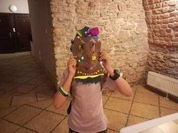 Na koniec sami mogliśmy wykonać takie maski. W ruch poszły nożyczki, papier, bibuła, kredki i plastelina. Zabawa była fantastyczna, a efekty świetne.