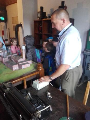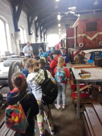 Pan przewodnik w niezwykle interesujący i dynamiczny sposób opowiedział nam o historii stacji. Dowiedzieliśmy się, że nazwa „Rudy” pochodzi od diabła Rudolfa straszącego pracujących tam kolejarzy. Oprowadzający zaprowadził nas do kuźni oraz warsztatu, w którym to spotkał tę fantastyczną postać. Dodatkowo, dowiedzieliśmy się jak powstają pociągi i zobaczyliśmy najstarszą w Europie jeżdżącą lokomotywę. Zaskoczeniem dla dzieci były funkcje, które posiadał dawniej kowal – oprócz tego, że wyrabiał przedmioty z żelaza, był także dentystą. Pomimo propozycji ze strony pana przewodnika, żaden z uczniów nie zdecydował się na zabieg wyrywania zębów. Nikt także nie chciał wypróbować starej maszynki do strzyżenia, która znajdowała się w śląskiej izbie zaaranżowanej na potrzeby muzeum.