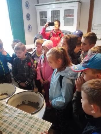 Warto dodać, że pierwszoklasiści z naszej szkoły są bardzo samodzielni. Każdy, podczas ogniska kończącego naszą podróż, upiekł sobie kiełbaskę i zjadł ją w przyjemnej atmosferze integrującej całą klasę. W tym dniu nikt z uczniów nie miał ze sobą komórki ani tabletu, gdyż chcieliśmy spędzić ten czas wyłącznie przy rozmowach oraz wspólnym oglądaniu eksponatów i słuchaniu interesujących historii przewodnika.