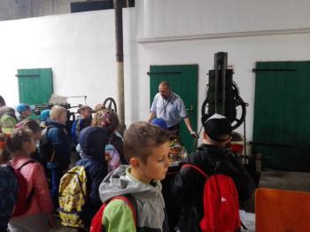 Swoją przygodę na szlaku techniki rozpoczęliśmy przejażdżką niezwykłym pociągiem. Był on o wiele mniejszy od tradycyjnej kolei, w dodatku nie miał szyb, co wzbudziło zaskoczenie wśród uczestników wycieczki. Malowniczy pejzaż, który mijaliśmy był więc na wyciągnięcie ręki. Pełni emocji po tej niezwykłej podróży spotkaliśmy pana przewodnika czekającego na nas na tuż przy peronie.
