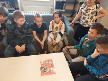 W tym dniu uczniowie wzięli udział w miejskiej grze terenowej "Z Koziołkiem po mieście", której organizatorem była MBP. Dzieci z mapą w ręku, szukały punktów oznaczonych rysunkiem Koziołka Matołka. Następnie rozwiązywały zadania, które były związane z książkami polskich autorów uhonorowanych Ogólnopolską Nagrodą Literacką im. Kornela Makuszyńskiego. Za prawidłowo wykonane zadania klasa otrzymała książki, które przekazała do biblioteki szkolnej.