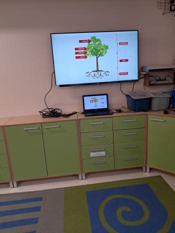 Dzieci na świetlicy również mogły poznać ogromne znaczenie drzew dla naszej planety. Oglądały filmik edukacyjny „Poznaj świat drzew”- zdobyły garść informacji o rodzajach drzew, ważności drzew na naszej planecie i w naszym codziennym życiu.