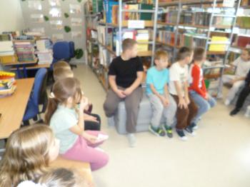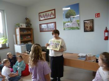 Dzieci ze świetlicy szkolnej w ramach Października Miesiąca Bibliotek Szkolnych również odwiedziły swoją szkolną bibliotekę, w której z uśmiechem powitała nas bibliotekarka pani Basia. Zajęcia rozpoczęły się od wprowadzenia, podczas którego pani bibliotekarka opowiedziała dzieciom o tym, czym jest biblioteka, jak można z niej korzystać, jak powstała książka, jak należy obchodzić się z książkami i jakie rodzaje książek można wypożyczyć w bibliotece. Uczniowie dowiedzieli się także, w jaki sposób mogą zapisać się do biblioteki i jakie zasady obowiązują przy wypożyczaniu książek.