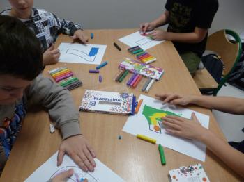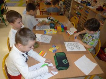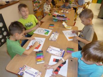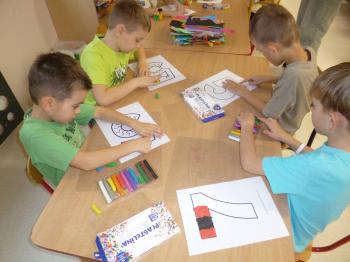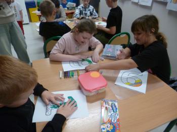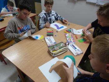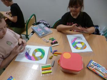 W czasie pracy plastycznej uczniowie wyklejali plasteliną, papierem kolorowym lub malowali farbami wybrane przez siebie liczby. Prace ozdobiły naszą świetlicową gazetkę.