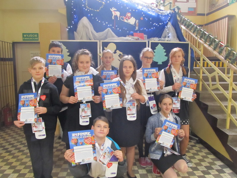 Uczniowie naszej szkoły: Marzec Bartosz , Brzeźniak Kamil ,Bratek Zuzanna, Chowaniec Kinga, Foks Natalia, Krawczyk Natalia, Madeja Natalia, Wolański Mariusz, Zielińska Zofia też wzięli udział w zbiórce pieniędzy. Wolontariusze kwestowali w Porębie Wielkiej i Grojcu. Dzięki wielkiemu zaangażowaniu rodziców: pani Jolanty Foks i pani Magdaleny Zielińskiej, które opiekowały się wolontariuszami w Grojcu, udało się zebrać kwotę 4868zł 63gr. Serdecznie dziękujemy wszystkim, którzy wsparli Wielką Orkiestrę Świątecznej Pomocy.