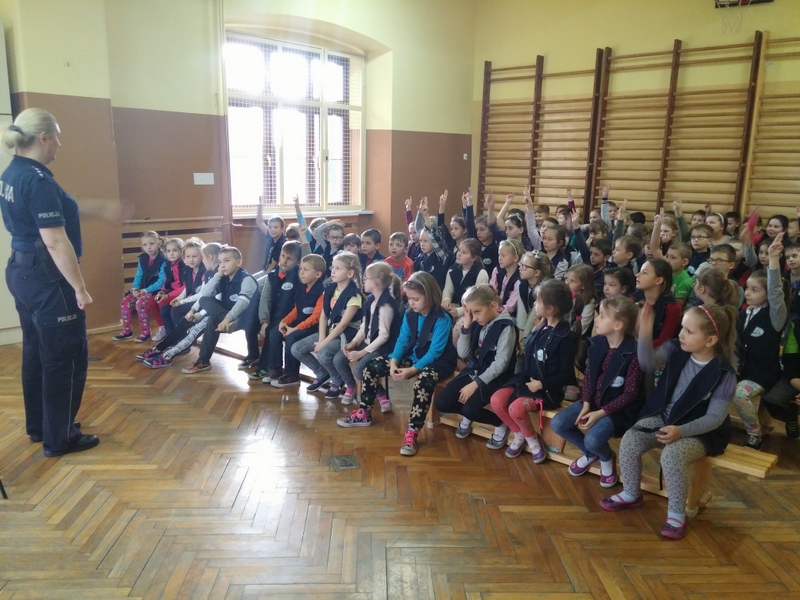 Spotkanie zostało podzielone na dwie części. Policjantka rozpoczęła je rozmową z uczniami klas 4 – 6 na temat zapobiegania przemocy w szkole. Uczniowie zapoznali się z konkretnymi sytuacjami przemocy, które powodują konflikt z prawem, jak również z ich skutkami dla psychiki młodego człowieka. Policjantka zobaczyła się również z uczniami klas młodszych (I –III), by poruszyć temat "Bezpieczeństwo podczas ferii zimowych". Policjantka przypomniała o zagrożeniach czyhających