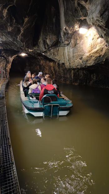Następnie wsiedliśmy do ciuchci, która zabrała nas w malowniczą podróż w głąb lasu aż do Jaskini Punkevni – jednej z największych atrakcji tego regionu. Tam czekało nas prawdziwe widowisko natury. Podziwialiśmy niesamowite formacje skalne, a serca zabiły mocniej podczas rejsu podziemną rzeką Punkwią, której wody urzekają pięknym turkusowym odcieniem. Cisza, echo i chłód jaskini zrobiły na wszystkich ogromne wrażenie!