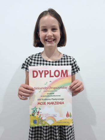 Aleksandra Chrapczyńska została także wyróżniona udziałem w wystawie pokonkursowej powiatowego konkursu plastycznego „ Moje Marzenia” , organizowanego przez Oświęcimskie Centrum Kultury.