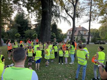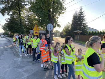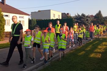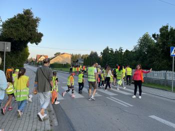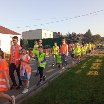 27 września uczniowie naszej szkoły wraz z rodzicami i nauczycielkami uczestniczyli w IV odblaskowym spacerze „Trzymaj formę odblaskowo i bezpiecznie!”. Głównym celem spaceru było zachęcenie mieszkańców Grojca do noszenia odblasków oraz rodzinne spędzenie pięknego, jesiennego popołudnia.
