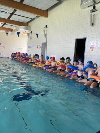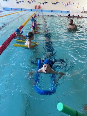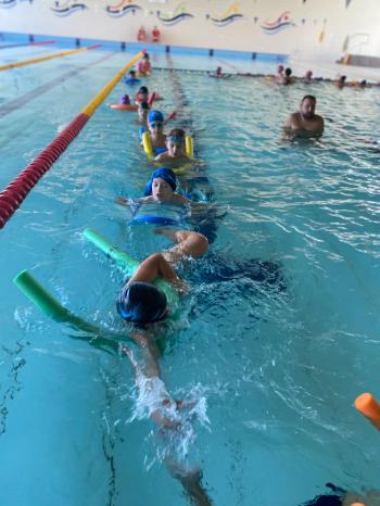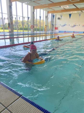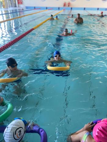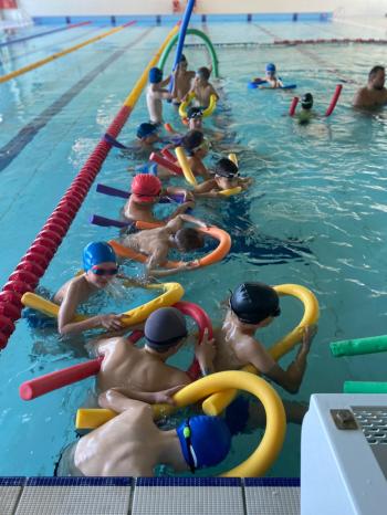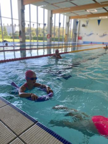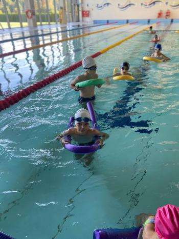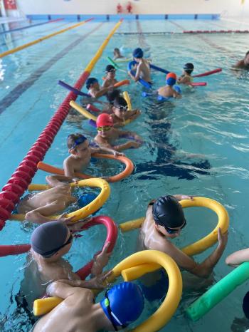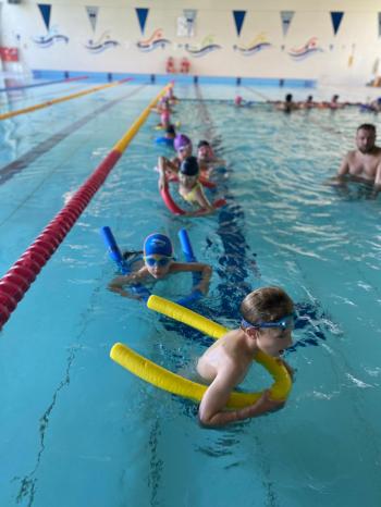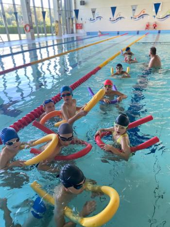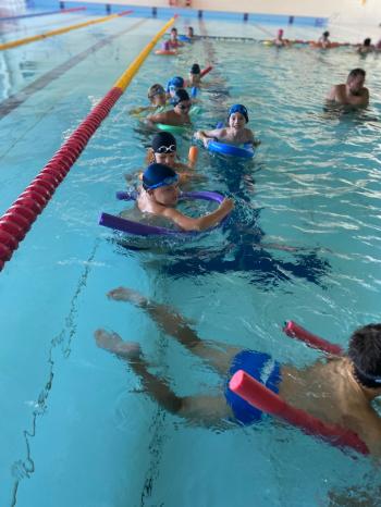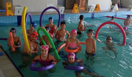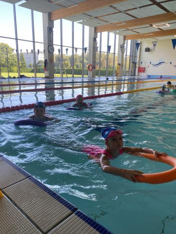 Projekt „Już pływam” realizowany jest przez Województwo Małopolskie wspólnie z Gminą Oświęcim w ramach pozalekcyjnych zajęć sportowych. W treningach prowadzonych na oświęcimskim basenie uczestniczy 15 uczniów naszej szkoły.