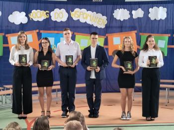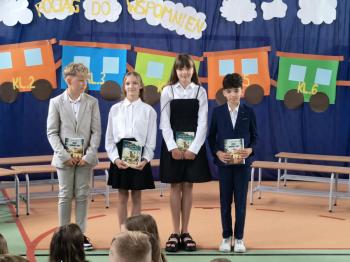 Ważnym elementem uroczystości było rozdanie nagród książkowych dla wyróżnionych uczniów z poszczególnych klas. To dla nich Rada Rodziców ufundowała pięknie wydane książki.