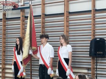 Uroczystość rozpoczęła się od przekazania sztandaru przez przedstawicieli klas ósmych w ręce pocztu z klas siódmych i odśpiewania hymnu narodowego. Później głos zabrała pani dyrektor Katarzyna Mendyk, która podsumowała rok szkolny, pogratulowała wszystkim uczniom sukcesów, podziękowała rodzicom, nauczycielom i pracownikom szkoły za owocną współpracę. Odczytała też list skierowany do społęczności szkolnej przez Wójta Gminy Oświęcim pana Mirosława Smolarka.