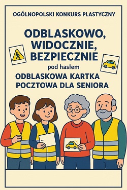 Zadanie konkursowe polega na zaprojektowaniu kartki pocztowej z motywem promującym noszenie odblasków przez seniorów jako kluczowego elementu bezpieczeństwa na drodze.
