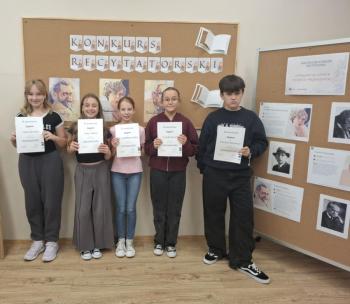 Do kolejnego etapu zakwalifikowało się troje młodych recytatorów: Luna Gabryś, Maja Kędracka oraz Karol Kobielski, którzy będą reprezentować nas podczas przesłuchań na szczeblu gminnym.