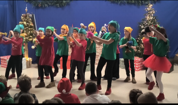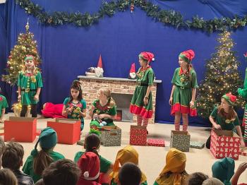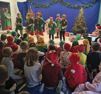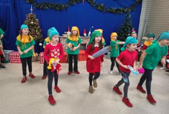 Spektakl obejrzeli uczniowie młodszych klas, którzy z ogromnym zainteresowaniem śledzili losy strajkujących elfów. Piękna, starannie przygotowana scenografia oraz barwne stroje dodały przedstawieniu niezwykłego uroku. Występ uświetniły także energiczne układy taneczne zaprezentowane do znanych melodii świątecznych, które wprowadziły na scenę jeszcze więcej radości i dynamiki.