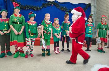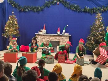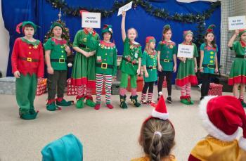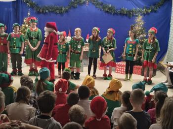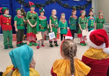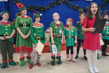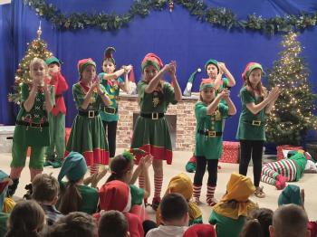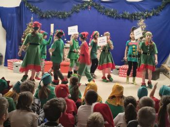 Tuż przed mikołajkami uczniowie z kółka języka angielskiego, wspierani przez aktorów z kółka teatralnego, zaprezentowali zabawne i pełne energii przedstawienie pt. „Elves on strike”.