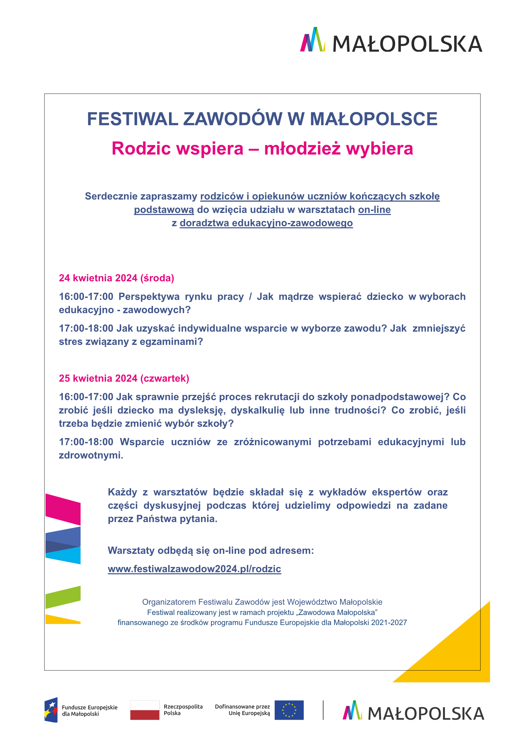 Festiwal Zawodów w Małopolsce „Rodzic wspiera – młodzież wybiera”