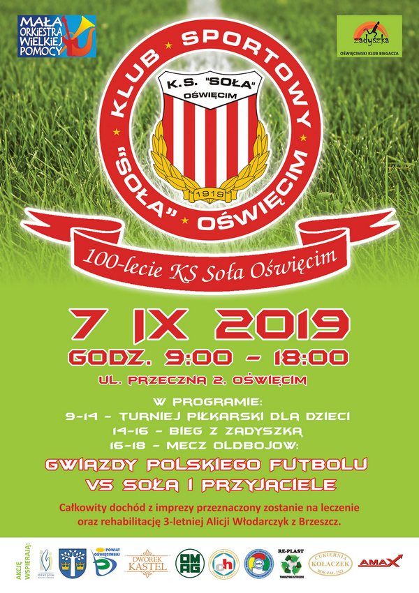 Zapraszamy na obchody 100-lecia Klubu Sportowego Soła Oświęcim. Oprócz sportowych emocji na milusińskich będzie czekać mnóstwo niezwykłych atrakcji. Start w sobotę, 7 września o godz. 9.00.