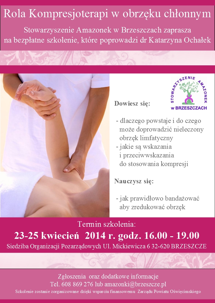 Stowarzyszenie Amazonek w Brzeszczach zaprasza na bezpłatne szkolenie dot. "Rola Kompresjoterapi w obrzęku chłonnym" 23-25 kwietnia 2014 ...