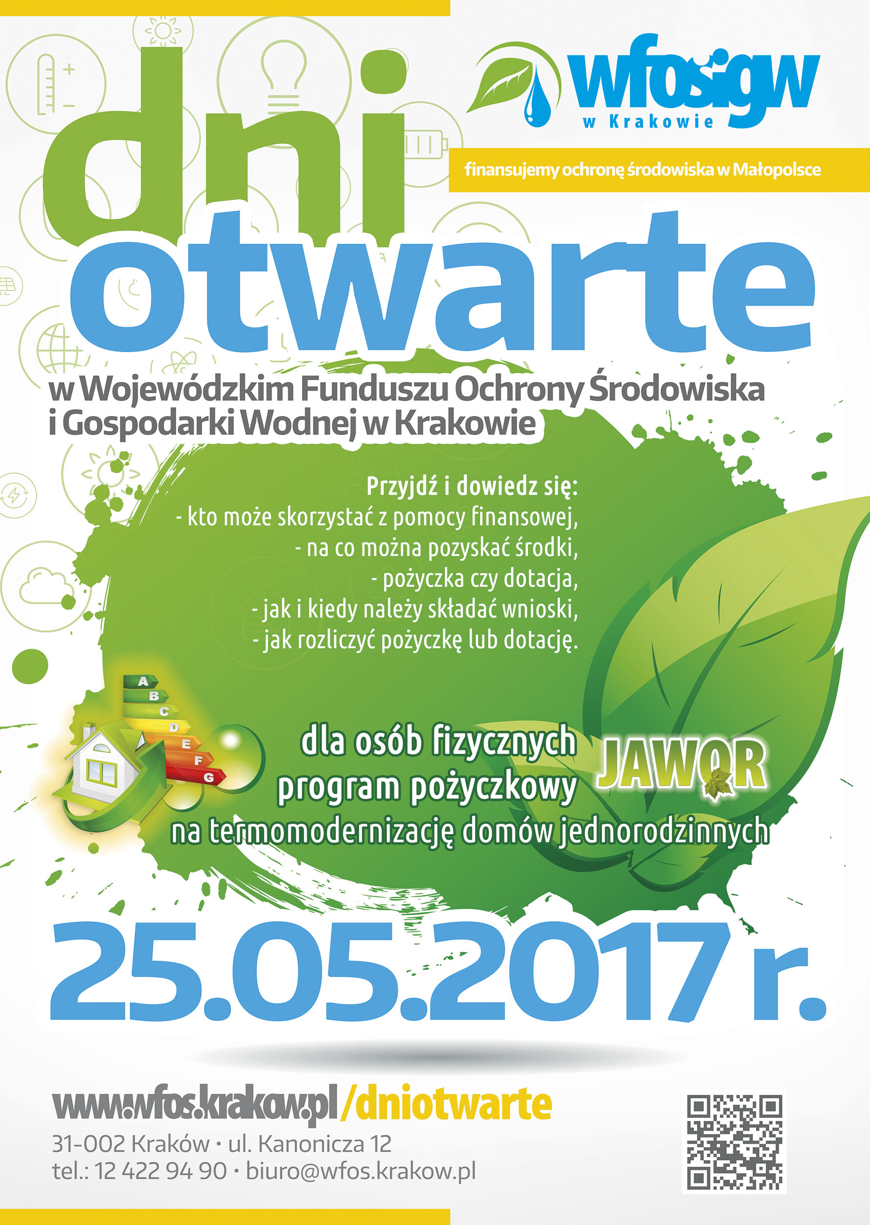 W ślad z informacją Prezesa Zarządu Wojewódzkiego Funduszu Ochrony Środowiska i Gospodarki Wodnej w Krakowie, Wójt Gminy Oświęcim zaprasza na Dzień Otwarty WFOŚiGW w Krakowie, który odbędzie się 25 maja 2017 r. w godzinach 8:00-15:00.